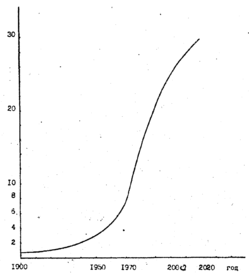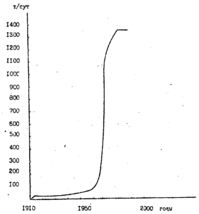 Аналогичный характер носит динамика процессов, происходящих в экономике - рост объемов производства, потребления энергоресурсов и т.д. Это демонстрирует рис.7.3.