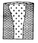 | Стовпоподібні – при значному розмірі по падінню (в глибину) мають невеликі розміри по простяганню. Різновидом стовпоподібних родовищ є трубоподібні, які в горизонтальному перетині мають еліптичну форму (кімберлітові трубки) | |
