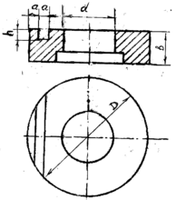 Диаметр детали D = 2,3 dотв, высота детали b = 0,67 dотв. Приспособление предназначено для базирования заготовки плоскостью, внутренней цилиндрической поверхностью, опорной скрытой базе и для закрепления заготовки равномерно распределенными силами, направленными по нормали к установочной базе.