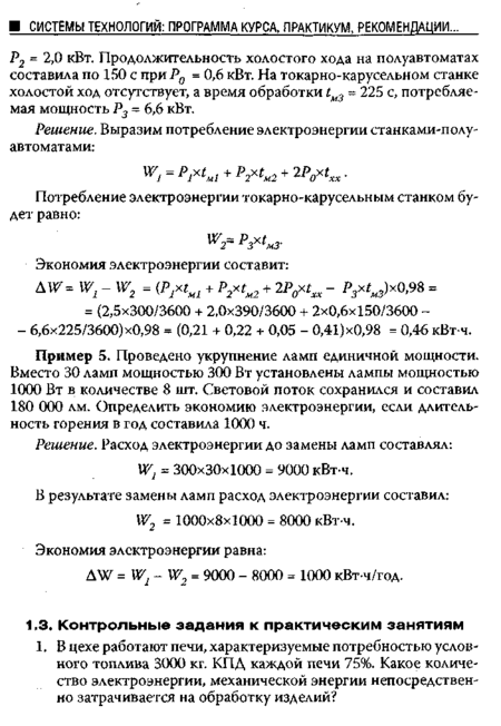 3. Определить время обработки изделий на станке при прежнем способе, если время обработки изделий при новом способе равно 100 с. Экономия электроэнергии составляет 0,25 кВт-ч, а мощность потерь холостого хода 0,15 кВт.