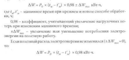 Расчет экономии электроэнергии ведут при внедрении нового способа обработки детали на прежнем станке либо при передаче обработки на другой станок.