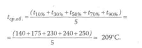 При разгонке нефтепродуктов по ГОСТ устанавливают температуры отгона 10% (объемн.), 30%, 50%, 70%, 90% этих продуктов. Тогда среднеобъемная температура рассчитывается по выражению: