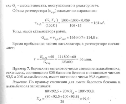Решение. Пусть Х- массовая доля бензина каталитического кре-кингав А-72. Тогда можно записать: 100x76 = (100 - JQX62 + Хх82; X = 70% масс. Следовательно, А-72 состоит из 70% масс, бензина каталитического крекинга и 30% масс, бензина прямой перегонки.