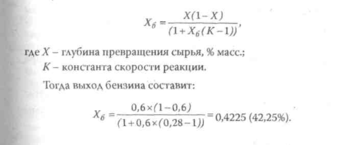 4. Определить выход бензина при каталитическом крекинге в кипящем слое катализатора. В качестве сырья используют керосино-газойлевую фракцию, глубина превращения которой равна 0,59. Константа скорости реакции составляет 0,28.