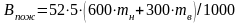 где 52 – количество календарных недель в расчетном году; 5 – время еженедельной проверки работы пожарных гидрантов, мин; mн и mв – количество наружных и внутренних пожарных гидрантов, один гидрант устанавливается на площадь 300…500 м2; 600 и 300 – норма расхода воды при еженедельных проверках пожарных гидрантов;