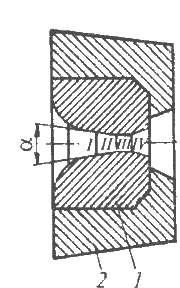 Волока 1 закрепляется в обойме 2. Волоки имеют сложную конфигурацию, ее составными частями являются: заборная часть I, включающая входной конус и смазочную часть; деформирующая часть II с углом в вершине