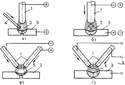 Рис.17.1. Схемы дуговой сварки