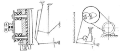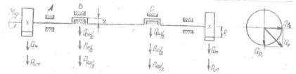 На мал. 14 позначено: Qм - маса маховика; Qр1 - вертикальна складова від натягнення ременів; Qр2 - горизонтальна складова від натягнення ременів; РА - зусилля, діюче уздовж рухомої щоки, Н; Рнм - сила інерції від вантажу, що врівноважує на маховику, Н; PА-1 - вертикальна складова від зусилля, діючого уздовж рухомої щоки, Н;