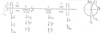Далі визначають крутний момент і згинаючі моменти. Розрахунок діаметра валу і підбір підшипників виконують згідно курсу "Деталі машин".