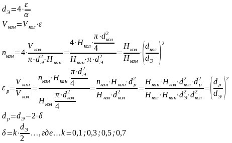 Основными характеристиками насадки являются ее удельная поверхность а (м2/м*) и свободный объем ε (м3/м3). Свободный объем для непористой насадки обычно определяют путем заполнения объема насадки водой. Отношение объема воды к объему, занимаемому насадкой, дает величину ε. Эквивалентный диаметр насадки