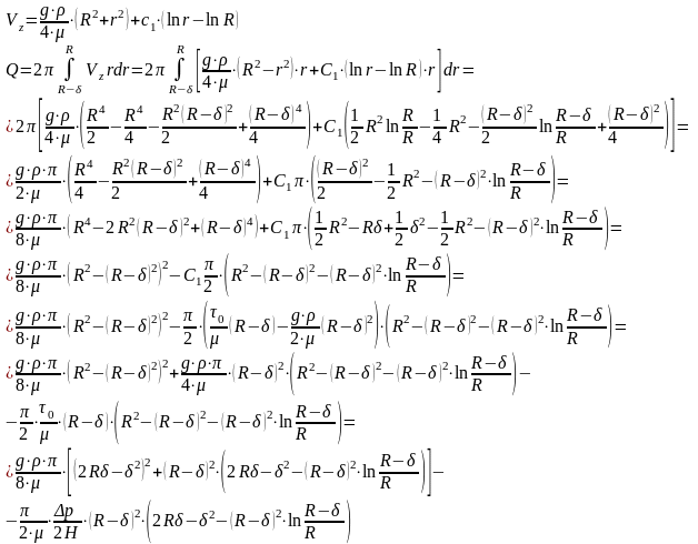 Интегрируя уравнение для течения жидкости в круглой трубе по частям, приходим к уравнению: