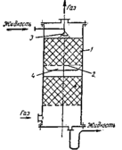 1 - насадка: 2 - опорная решетка; 3 - распределитель жидкости; 4 - перераспределитель жидкости.
