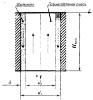 Четвертый режим - режим уноса, или обращенного движения жидкости, выносимой из аппарата газовым потоком. Этот режим на практике не используется.