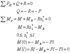 Пусть . Прежде всего определим опорную реакцию R, задавшись ее направлением вдоль оси х.