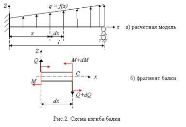 Рассмотрим расчетную схему балки с произвольной распределенной нагрузкой (рис.2).