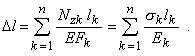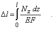 (индекс k у модуля продольной упругости означает, что участки стержня могут быть изготовлены из различных материалов). В случае, когда Nz и EF меняются по длине стержня l непрерывно и их можно считать постоянными лишь в пределах ступеней длиной dz, обобщая формулу эту, получаем