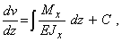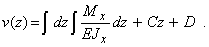 которое с учетом , дает также закон изменения углов поворота поперечных сечений по длине балки. Повторным интегрированием получаем функцию прогиба