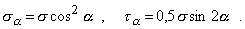 Напряжения на площадках, наклоненных к оси стержня под углом , определяются по формулам для упрощенного плоского напряженного состояния: