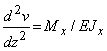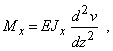 Тогда, подставив это выражение в полученную ранее связку кривизны и изгибающего мометна - , условившись что ось Oy направлена вверх и согласовав знаки 1/ и Мх, приходим к дифференциальному уравнению прямого изгиба балки
