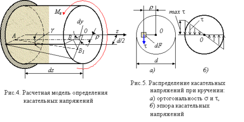 Обратим внимание на то, что в соответствии с рис. 4 и рис. 5, а сдвиг  и связанное с ним касательное напряжение  перпендикулярны радиусу . Определим , воспользовавшись законом Гука для чистого сдвига