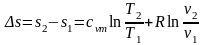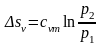 Вираз для зміни ентропії в ізохорному процесі можна отримати із загального співвідношення (8.11), прийнявши v1=v2