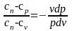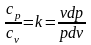 Рівняння адіабатного процесу в р-v- координатах може бути отримано, якщо використовувати вирази першого закону термодинаміки (4.3) і (4.5) та врахувати особливості ідеального газу: