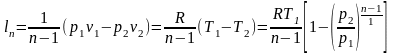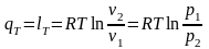 Зміна внутрішньої енергії та ентальпії для ідеального газу в ізотермічному процесі рівна нулю (du = 0 та dh = 0)9 оскільки dТ = 0. Отже, вся підведена в процесі теплота витрачається тільки на роботу. Робота в процесі визначається за (4.4) шляхом заміни