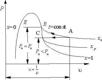 Процес насичення може проходити і при незмінній кількості водяної пари, якщо охолоджувати вологе повітря при постійному парціальному тиску водяної пари Рп (процес АС). В точці С пара стає шсиченою і при подальшому незначному зниженню температури створюється туман (випадання роси).