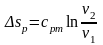 Зміну ентропії в ізобарному процесі можна визначити із загального виразу (8.12),прийнявши р1 = р2,