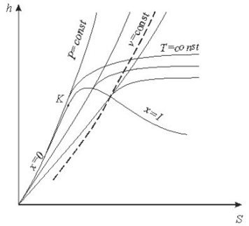 На діаграмі вісь абсцис направлена під кутом 135 до осі ординат. Тому лінія h = соnst нахилена під кутом 45 до горизонту. Для скорочення розмірів діаграми значення d з осі абсцис зносять на горизонтальну умовну вісь 0-0.