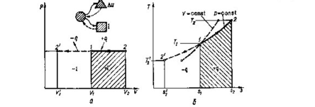 Рис 8.2.1. Зображення ізобарного процесу в РV і ТS-діаграмах.