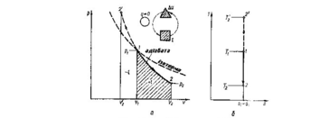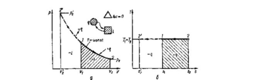 В Т-s-координатах адіабата зображується вертикальною прямою (рис.8.4.1,б).