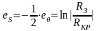 Обращает на себя внимание то, что меридиональная деформация меняет свой знак в области пластического очага с “-” на “+”. Проведенный анализ дает возможность предположить, что длина образующих заготовки и детали одинаковы. Это условие также как и при вытяжке позволяет определить и исходные величины отверстия и величины деформаций исходя из геометрических соображений. Таким образом одна из деформаций уже известна из условия равенства длин образующих.