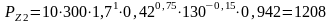 где CPz ― коэффициент сил резания и показатели степени по [11, с.273, табл. 22] CPz = 300, XP = 1, Yp= 0,75 и n = −0,15;