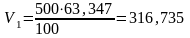 Далее по тому же приложению находим, что в 100 объемах водно–спиртового раствора крепостью 40% об содержится 63,347 объемов воды, и пересчитываем это количество на требуемый объем сортировки: