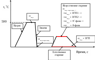 При старении происходят фазовые превращения диффузионного характера, связанные с превращением закалочных фаз (), н и . Конечный продукт превращения - стабильная ()-структура . Возможно также образование интерметаллидных соединений.