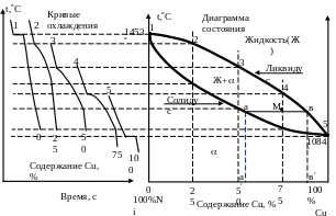1. Начертить часть диаграммы AlCu, указать на ней сплав Д1 (Аl + 3,8... 4,8% Сu + 0,4... 0,8% Мg + 0,4...0,8% Мn). Выбрать для него температуру нагрева под закалку. Показать на диаграмме состояния интервал закалочных температур для других сплавов.