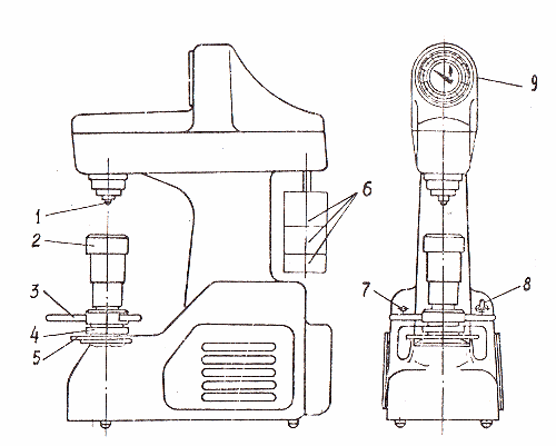 Одновременно деформация может контролироваться специальным счетчиком 32, одна единица показаний которого соответствует 0,2 мм перемещения подвижной траверсы 4.