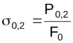 Несколько выше точки Р находится точка «е». Напряжение в точке «е» есть предел упругости 0,05, который вычисляют по формуле: