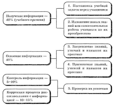 В настоящее время в дидактической структуре урока выделяются несколько взаимосвязанных элементов (этапов):