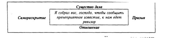 Эффективной коммуникация будет тогда, когда получатель сообщения правильно расшифрует все его четыре стороны. Если же получатель не способен расшифровать все стороны сообщения или реагирует не на ту его сторону, то возникает непонимание.