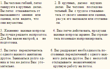 ИНСТРУКЦИЯ: если у Вас больше ответов "Да" с нечетными номерами /1,3,5/, то напишите себе "А" и переходите к части II. Если у Вас больше ответов "Да" с четными номерами /2,4,6/, то напишите себе "В" и переходите к части II.