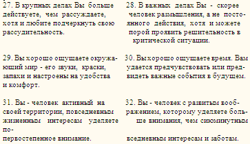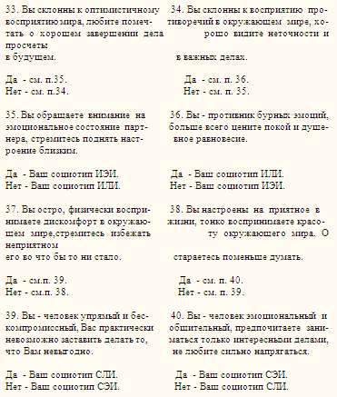 ИНСТРУКЦИЯ: Если у Вас больше ответов "Да" с нечетными номерами /27,29,31/, то см. п.37, если же больше ответов "Да" с четными номерами /28,30,32/, то см. п.33.