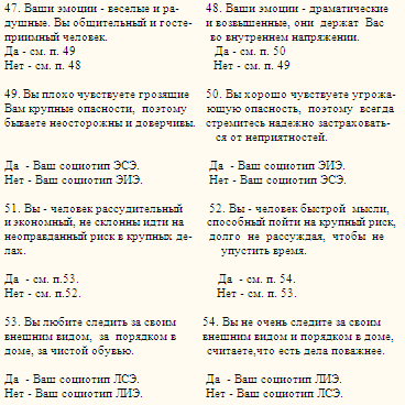 ИНСТРУКЦИЯ: если у Вас больше положительных ответов с нечетными номерами /41,43,45/, то см. п.47, если же больше положительных ответов с четными номерами /42,44,46/, то см. п.51.