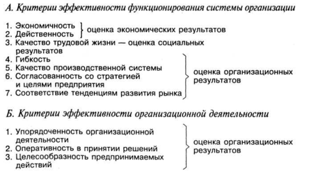Внешний критерий позволяет оценить результативность организации с точки зрения соответствия поставленных целей и средств их достижения нормативной системе общественных ценностей и выполнения ограничений на ресурсы исходя из целей производственной системы, частью которой она является. Внутренний критерий характеризует интересы, свойственные данной организации, и может быть выражен через затраты ресурсов системы при ограничениях, накладываемых общественными потребностями.