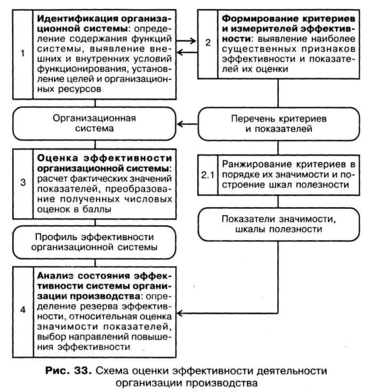 Рис. 2 Схема оценки эффективности деятельности организации производства.