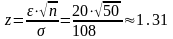 Пример 1.9.5 Определить, с какой доверительной вероятностью можно утверждать, что при данном объеме выборки (50 коробок) ошибка выборки не превысит 20 г.