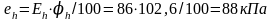 Парциальное давление паров на внутреннюю поверхность ограждающей конструкции (стены):