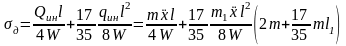 При вибрации балки, несущей равномерно распределенную нагрузку и сосредоточенный груз посередине пролета, динамическое напряжение найдется по формуле