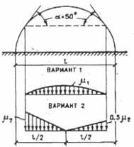 | 2’ | Покрытия в виде стрельчатых арок | При 15 необходимо использовать схему 1, б, принимая l = l’, при < 15 — схему 2. |